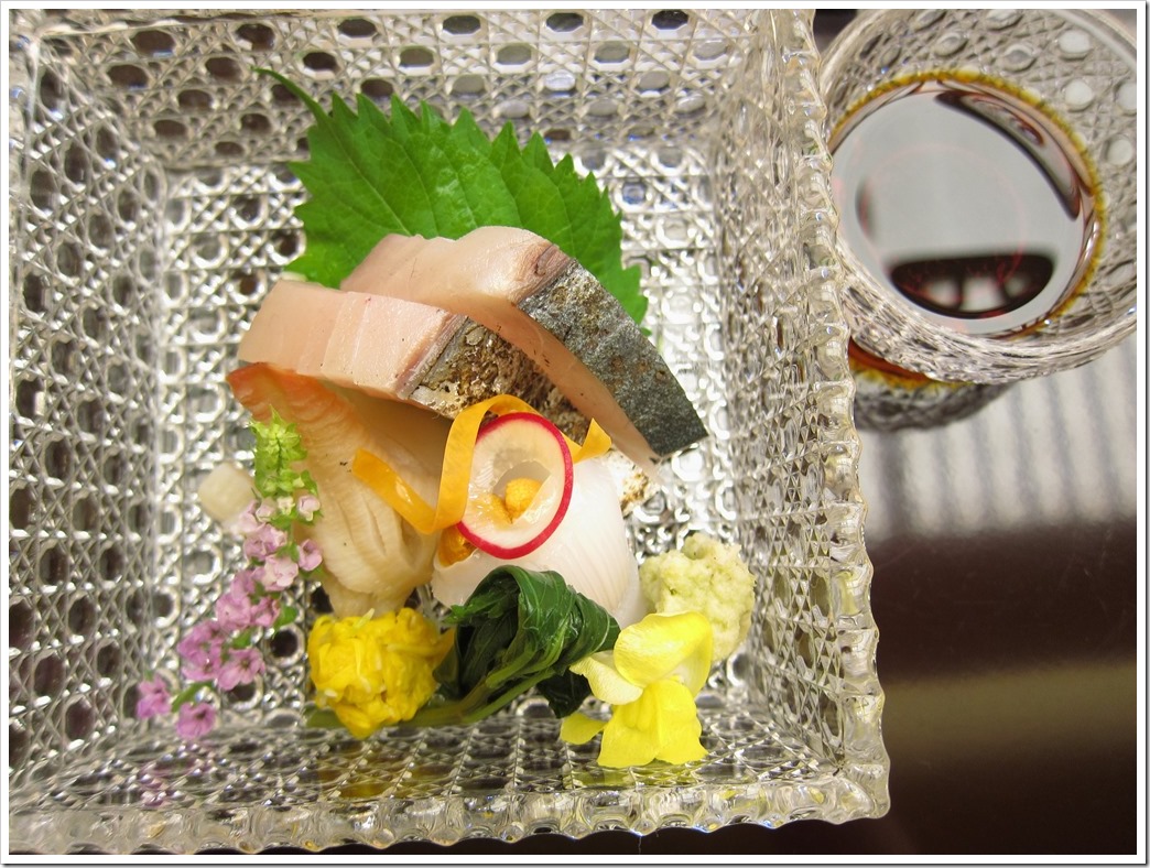 閃閃動人的玻璃盒是生魚片容器,老闆娘特別解釋這是向江戶切子訂購的手工製品,盒蓋上是他們中島家家紋。